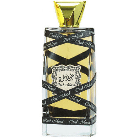 Oud Mood by Lattafa Perfumes is a fragrance for women and men. Top notes are Rose, Saffron and Pimento; middle notes are Agarwood (Oud), Caramel, Floral Notes and Patchouli; base notes are resins, Amber, Woody Notes, Incense and Musk.
